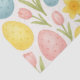 Dieses nahtlose Frühlingsmuster auf Tissue-Papier zeigt Oster-Eier und blühende Frühlingsblumen. Der Pastelldruck ist charmant und gut geeignet für Geschenkverpackungen und Bastelprojekte.