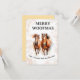 Feiern Sie die Feiertage mit dieser Wasserfarbe-Hunde-Weihnachtskarte "Merry Woofmas", die zwei wunderschön illustrierte Pferde vor einem sanften winterlichen Blumenhintergrund zeigt. Die warme, spielerische Botschaft macht dieses Design perfekt für Tierliebhaber, Reiter, Stallfamilien und alle, die eine einzigartige Variante traditioneller Weihnachtsgrüße genießen.