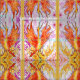 Dieses Gewebe ist mit ursprünglicher Watercolorkunst des Phoenix-Vogels gemustert, der wie Flammen in einem brennenden Kaleidoskop steigt.