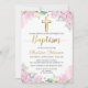 Aquarell Pink Floral Gold Script Taufe Einladung