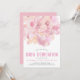 Ein hübsches und modernes Baby Girl Widding Einladung in Rosa und Weiß, mit einem großen Wasserfarbenpeony Blume Kopf und Pinsel Schriftstil Schriftart. Die Rückseite ist in massivem Rosa mit einem weißen Trellis Muster Overlay dargestellt.
