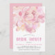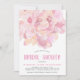 Eine hübsche und moderne Braudusche in Rosa und Weiß, mit einem großen Blume mit Wasserfarbenpeony und einem Schriftart mit Pinsel. Die Rückseite ist in massivem Rosa mit einem weißen Trellis Muster Overlay dargestellt.