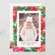 Feiern Sie den Zauber der Saison mit unserer individuell gestaltbaren Weihnachtskarte aus Foto mit Aquarell-Poinsettia und Heiligen. Diese botanische Urlaubskarte verbindet die handbemalten Aquarelltöne mit dem festlichen Charme der Winterbeeren und -heiligen und schafft so ein lebendiges Design für Ihre Urlaubssegmente. Unsere individuell gestaltbare Karte eignet sich ideal für Familien, Freunde und Firmenkunden. Sie können Ihre eigene Touch hinzufügen und die Freude an der Saison teilen. Personalisieren Sie Ihre Weihnachtskarte für Ihr Foto mit einem Foto für die ganze Familie, einem Haustierfoto oder einem anderen Sonderbild, um sie zu einem einzigartigen Erlebnis zu machen. Geben Sie eine persönliche Nachricht ein, um eine unvergessliche, einmalige Urlaubskarte zu erstellen. Egal ob Sie mit Lieben feiern oder sich an Ihre Kunden wenden, diese elegante und individuell gestaltbare Karte verlasst einen bleibenden Eindruck.