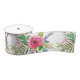 Schöner Watercolorentwurf mit der süßen Blumenanordnung, die rosa Blume, Grün-Blätter und eine Andeutung der lila Flieder kennzeichnet. Reizendes Band für irgendein Paket.