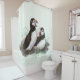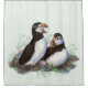 Aquarell Puffsvogel Familie Hellgrüner Hintergrund Duschvorhang