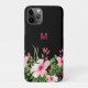 Aquarell Rosa Blume auf schwarz Mit Monogramm Case-Mate iPhone Hülle