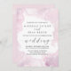 Diese Aquarellpinke und die lila Einladungskarte für eine Hochzeit sind perfekt für eine moderne Hochzeit. Das Design ist mit einer weichen, rosafarbenen Aquarellfarbe mit grauem Text ausgestattet.