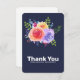 Ein Party (oder andere Gelegenheit) danke Karte mit einem schönen Bouquet von Aquarellfarben-Rose mit Rändern, Blätter und Ästen alle zusammen in einer farbenfrohen Blumengestalt. Navy Hintergrund.