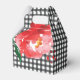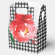 Schwarz-Weiß-Karo gedeckte Gefälligkeitsboxen, die mit einer rote Rose vorne und hinten auf diesen 4" breiten x 2,5" langen x 5" Hochglanz-Gable-Stil-Gefälligkeitsboxen hervorgehoben sind. (5 Kästchen für SIE ENTWICKELT - siehe unseren Link zum Shop.) Ideal für Ihr Derby Party, Derby Themenabend Brautparty, Geburtstagsparty und vieles mehr. PASSENDE Artikel in unserem Geschäft.