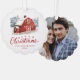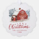 Aquarell Roter Stall Frohe Weihnachten Foto Ornament Karte