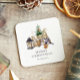 Diese gemütlichen, rustikalen Untersetzer der Urlaubsparty zeigen eine Aquarellillustrierung einer niedlichen Frauenknoe neben einem Miniaturweihnachtsbaum, einem Korb aus Birkenholz und einigen Kerzen. Die Wörter "MERRY CHRISTMAS" erscheinen in grauen Serifenbriefen, die sich mit der Kunst abstimmen.