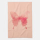 Handtuch gemustert mit einem Single, groß, Watercolorschmetterling in den Schatten von tief zur weichen Koralle auf einem Pastellpfirsich/korallenroten einem Hintergrundhandtuch