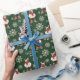Aquarell Schneeflocken Grüne Frenchie Hund Weihnac Geschenkpapier