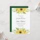 Unsere eleganten Watercolor Sonnenblumen Hochzeitseinladungen zeigen Ihre Hochzeitsdetails mit Sträuchern aus gelben Sonnenblumen, üppigen grünen Blätter & Blättern am oberen und unteren Rand des Einladens. Die Einladung kehrt zu einem soliden grünen Hintergrund zurück. Die rustikalen blumengeschmückten Einladungen sind ideal für den Sommer und die Hochzeiten im Herbst.