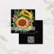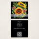 Eine Visitenkarte mit schwarzem Hintergrund mit Blumenmuster und Sonnenblumen.