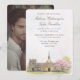 Eine elegante Aquarell-Hochzeitseinladung mit zeitloser Darstellung einer Steinkapelle und raffinierter Kalligrafie-Typografie. Entworfen in sanften, neutralen Tönen mit einem Farbakzent durch Frühlings-Kirschblüten auf einer subtilen Aquarell-Papiertextur, ist diese Einladung perfekt für klassische, romantische und traditionelle Hochzeiten. Ideal für Kirchenzeremonien, Kapellen-Veranstaltungsorte oder Paare, die eine ruhige, anspruchsvolle Schreibwaren-Mappe suchen. Vollständig anpassbarer Text und Platz für Ihr Foto auf der Rückseite machen es leicht, für Ihren besonderen Tag zu personalisieren.
