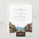 Diese Save the Date Postkarte zeigt ein Aquarellbild der Telluride Colorado Hauptstraße und moderne minimalistische Schriftart. Dies ist perfekt für Ihre Colorado Berghochzeit oder für Ihre Ski-Reise.