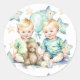 Aquarell Twin Boys Babydusche Runder Aufkleber