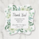 Dieses stylische Gastgeschenk Hochzeit-Tag zeichnet sich durch einen dicken Rand von üppigem Blattwerk aus, einschließlich Eukalyptse und hellen Blume. Personalisieren Sie mit einem Dankeschön Nachricht, Namen und Hochzeitsdatum.