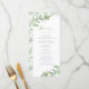 Speisekarte mit den Blume "Watercolor Greenerity" und "White" | Fügen Sie Ihrem Tischdeck einen grünen Akzent mit dieser individuell gestaltbaren Karte. Es zeigt Aquarellbilder und Muster von Blattwerk und weißen Blume. Diese Karte ist perfekt für Frühjahr- und Gartenhochzeiten und andere Veranstaltungen geeignet.