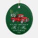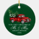 Wasserfarbener Vintager roter LKW und Weihnachtsbaum. Unsere ersten Weihnachten als Herr und Frau Ornament. Forest Green Hintergrund mit weißem Script.