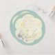 Eine einzigartige Babypartyeinladung, die einen kleinen Vogel des Aquarells auf einer Niederlassung kennzeichnet. Die GesamtBlumenform wird auf einen blaugrünen Hintergrund überlagert.