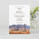 Diese elegante Hochzeitseinladung mit einer Western-Cowboy-Ranch-Gebirgsszene kann mit Ihren Informationen in schicker Typografie personalisiert werden. Entworfen von Thisisnotme©
