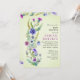 Feiern Sie die Ankunft eines neuen Babys mit unserer Watercolor Wild Blume Arrangement Pale Green Baby Shower Einladung. Dieses reizvolle Design vereint das Wesen des Frühlings mit einer atemberaubenden Auswahl an Wildblumen in den Farbtönen Blau, Magenta Rosa und lila Gestaltung der links Seite der Einladung vor einem schönen, hellgrünen Hintergrund. Eine Touch Frische verleihen die schönen bläulich grünen Blätter, die das Blumenmotiv ergänzen. Sie können diese Einladung wirklich einzigartig machen, indem Sie den Text auf der Vorderseite zum Anzug Ihres besonderen Anlasses anpassen. Auf der Rückseite finden Sie weitere blumengeschmückte Arrangements, die den oberen und unteren Teil schön umrahmen und die Ästhetik dieser charmanten Einladung vervollständigen.