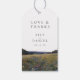 Diese eleganten Aquarell-Wildblumen-Blumenwiese-Hochzeitsgeschenkanhänger können mit Ihren Informationen in moderner Typografie personalisiert werden. Entworfen von Thisisnotme©