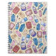 Notizbuch mit Watercolorflaschen, Phiolen, Kräutern, Büchern von Alchimie und von Zauber, Kerzen, magischen Wands und Kristallen auf dem starry beige Hintergrund.