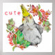 Aquarell zeichnend lustiger Papagei in Blume Poster