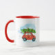 Aquarellauto mit Weihnachtsbaum oben Tasse