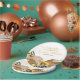 Aquarellbaby im Bau Babydusche Teller in Gelb und Braun mit niedlichen, bauspezifischen Abbildungen wie Werkzeugen und Holzblöcken. Diese Teller fügen eine charmante, rustikale Touch hinzu.