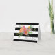 Elegante Hochzeit Dankeschön Notenkarte in einem fett schwarz-weiß gestreiften Muster, mit einem schönen und farbigen peonies Bouquet und schwarzen Text lesen Dankeschön. Personalisieren Sie den Text nach Ihren Wünschen und Anzug. Die passenden Hochzeitsprodukte stehen zur Verfügung.