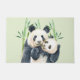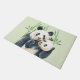 Eine Türmatte mit einer niedlichen Aquarellabbildungen mit einem schwarz-weißen Mama- und Babybär, der zusammen knuddelt. Mommy hält ihren Sack zwischen einigen grünen Bambusstalks.