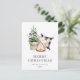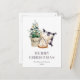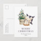Diese gemütliche, rustikale Urlaubspostkarte bietet eine Aquarellbild von Kissen im Bauernstil, einen Miniaturweihbaum und ein kleines Haus. Die Wörter "MERRY CHRISTMAS" erscheinen in grauen Serifenbriefen, die sich mit der Kunst abstimmen. Fügen Sie den Namen Ihrer Familie und das Jahr in kohlegrauer Kursivschrift hinzu, und Ihre Rücksendeadresse auf der Rückseite.