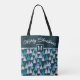 Diese festliche Weihnachtsstüte mit einem stylischen, sich wiederholenden Baummuster in mattierten, aquamarinen und sanften lila Tönen, im Aquarellstil. Ein kühnes dunkles Panel ist der Hintergrund für "Frohe Weihnachten" in elegantem Skript, und die Tasche zeigt auch Ihre individuelle Initialisierung in einem quadratischen Rahmen "Rahmen". Dieses moderne Design vereint festliche blühte mit einer personalisierten Touch und ist vielseitig für Urlaubs-Shopping, Saisonausflüge, das Tragen von Winteressentials oder als Präsentationstasche.
