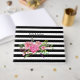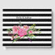 Das elegante Gästebuch aus schwarz-weißem, horizontalem Streifen mit Aquarellbildern aus einem rosafarbenen Granitbukett. Personalisieren Sie die Namen der Braut und des Bräutigams für Ihren besonderen Tag.
