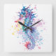 Aquarellbilder mit farbenfrohen Seepferden Quadratische Wanduhr