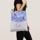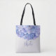 Wasserfarbe Blue Hydrangea Pearl Brautparty Tote Beutel. Diese moderne und stilvolle Tasche für Ihr Brautparty bietet eine modische Hydrangea mit Schrift-Typografie Ihrer Wahl. Der perfekte Hochzeitsspass danke für Ihr Brautparty!