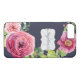 Dieses handgewölbte Blumenkrautdesign mit Single-Bordeaux-Pfannkuchen, Hopfen und englischen Rose in Rosa und Magenta kombiniert mit Ihrer Wahl der Hintergrundfarbe (hier in Marineblau dargestellt). Ein passender Rahmen in Form einer Halterung mit einem goldenen Glitzer-Look der Imitate ist halbtransparent, um das Muster durch lassen und enthält Ihren Vornamen und das letzte Monogramm. Copyright Audrey Jeanne Roberts, alle Rechte vorbehalten.