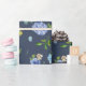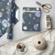 Ein feminines und elegantes Packpapier mit blauen und lila Hydrangeas.