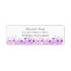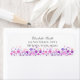 Aquarellfarbene Blume in lila, blauen und rosa Farbtönen mit pfirsichfarbenen Akzenten. Set auf weißem Hintergrund. Blume in lila, blauen und rosa Farbtönen mit pfirsichfarbenen Akzenten. Set auf weißem Hintergrund. Personalisieren Sie Ihren Namen und Ihre Adresse in dunkelgrau gemischter Schriftart.