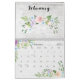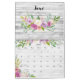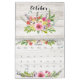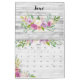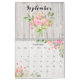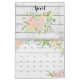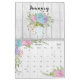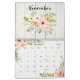 Eine wunderschöne Blumensammlung mit Bouquets und Sprays von pastellfarbenen, handgearbeiteten Aquarellfarben-Blume. Jede Kalendermonatsseite zeigt eine andere Mischung aus Blattwerk und Blume, einschließlich Rose, Hydrangeas, Hyazinthen, Anemonen und Poinsettien auf rustikalem weißem Holzhintergrund mit der Koordination von Rasterseiten.