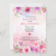 Weich rosa und violette Blumen werden in einem Aquarelleffekt mit einem rosa Aquarell-Hintergrund mit subtilen Spritzern gerendert. Ideal für ein rosa, wasserfarbenes oder Gartentheater Party Brautparty, Geburtstagsfeier oder Verlobungsfeier. Verfügbar mit passenden Produkten.