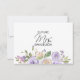Einfach elegantes, rustikales Bouquet-Design in Aquarell (Aquarell) grüne Vegetation, Lavendel, lila, violett, lila, rot, pfirsichfarben, weiße Blume Rose / Peony auf weißem Hintergrund und schwarzen Buchstaben. Delikate Hochzeitsdusche für das Frühling- oder Sommerthema. Perfekte Karten im Freien. Die Rückseite der Karte hat zukünftigen mrs.name .