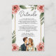 Diese elegante Aquarellkarte mit blumengeschmückten Hochzeitszimmern eignet sich perfekt für eine moderne Hochzeit. Das romantische Design besticht durch einen eleganten, floralen Aquarellrahmen mit einer Braut- und Bräutigrade und einer schwarzen Kalligraphie auf weißem Hintergrund.