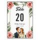 Diese elegante, Aquarellblütenhochzeit-Tischnummer eignet sich ideal für eine moderne Hochzeit. Das romantische Design besticht durch einen eleganten, floralen Aquarellrahmen mit einer Braut- und Bräutigrade und einer schwarzen Kalligraphie auf weißem Hintergrund.
