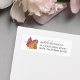 Elegante, aber skurrile Rücksendeadressen-Aufkleber mit einem Aquarellschmetterling in lebhaften Goldene Rot- und Weichrotttönen, neben den Adressangaben in Holzkohle-Graublöcken und Schriftzeichen. Koordiniert mit unseren Watercolor Butterfly Braun Dusche Einladungen und Zubehör.