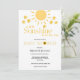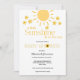 Minimalistisches Drehbuch, das unsere kleine Sonne auf dem Weg ist, Sonnenschein Blume Babydusche Ankündigung, einfache 70er Thema Baby Dusche Einladungskarte.